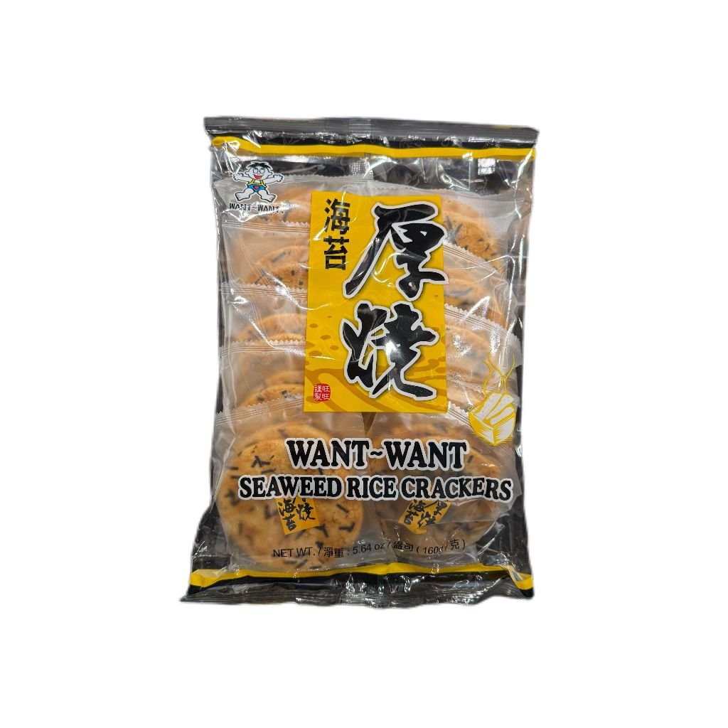 Experience a wave of savory flavor with Want Want Seaweed Rice Crackers. These delightful crackers are made from premium rice and baked to a perfect, airy crunch. Each cracker is lightly glazed with a savory soy sauce and generously sprinkled with fine seaweed flakes. The result is a sophisticated snack that balances the umami of seaweed with the classic toasty aroma of roasted rice.